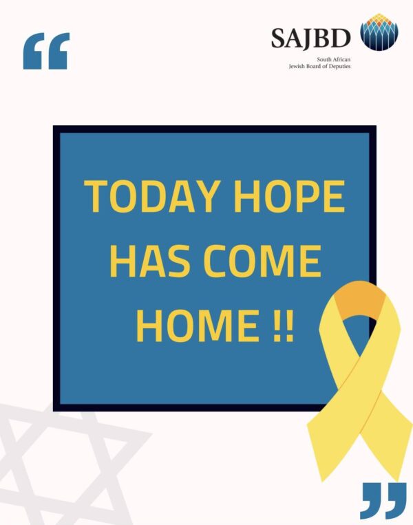 Today, Jews around the world will recite the prayer Shehechiyanu, vekiyimanu, vehigiyanu lazaman haze- thanking the Creator for keeping us alive, sustaining us and bringing us to this moment. And today, as our families are reunited after 737 days, we say this prayer with renewed vigour and a hope that the end of this horrific conflict will usher in a new era, a lasting peace and a period of prosperity for all the people of the region.